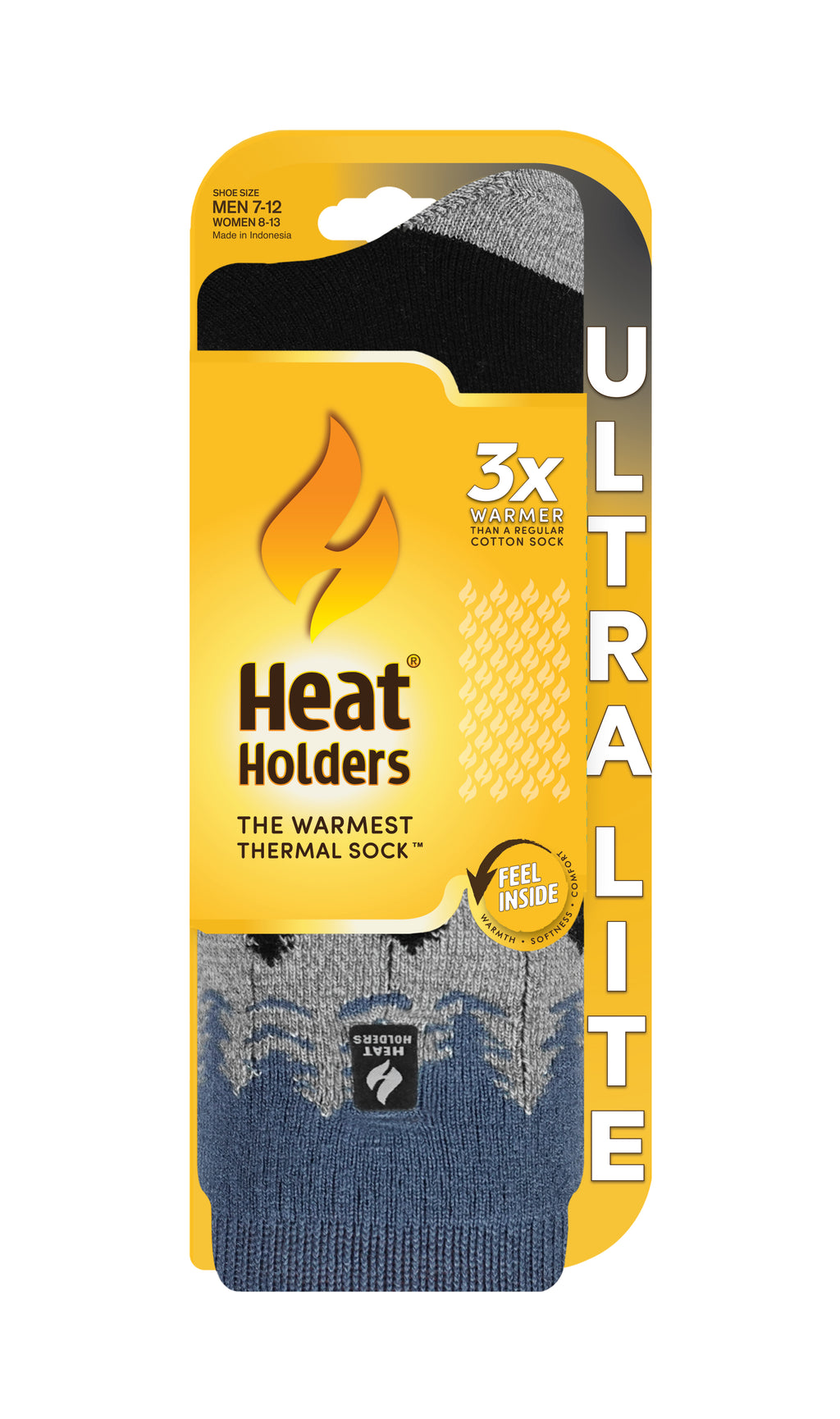 LIGHTWEIGHT YARN SOCK - Heat Holders® Men's ULTRA LITE™ Socks are designed to provide thermal protection in a slim lightweight profile and are 3X warmer than a basic cotton sock. They are made of advanced thermal yarn with a tog rating of 1.04 & are super soft and comfortable to wear. Our non-binding socks are available in a variety of colors and styles. The Men’s 7-12 size also fit Women’s 8-13 sizes.